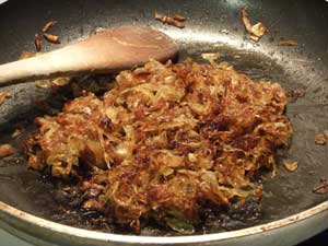 - ADD sliced onions and sauté over medium-low heat stirring frequently till onions have caramelized - about 1 hour.