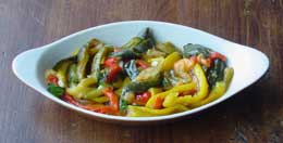 3. Remove all skin and seeds and slice the peppers into strips 3/4 inch (2 cm) thin. Place in a serving bowl and sprinkle with olive oil to taste. Add the garlic and basil or parsley, mix gently, and serve.
