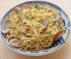 Spaghetti alle vongole is a mainstay of trattorias and restaurants in Naples and Rome, and is prepared in rosso or in bianco: with or without tomatoes. This version is in bianco.